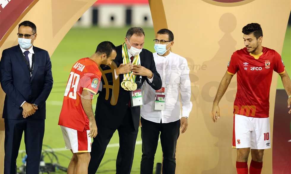 وأهدى لاعبو الأهلي ميداليات الفوز بالبطولة للخطيب أثناء التتويج باللقب.