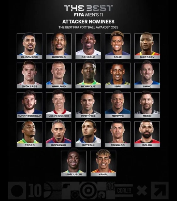 وتواجد ثلاثة لاعبين آخرين من نجوم دوري روشن هم الأسطورة البرتغالية كريستيانو رونالدو لاعب النصر، وحارس الأهلى، إدوارد ميندي، والإيطالي ماتيو ريتيغي، لاعب القادسية.