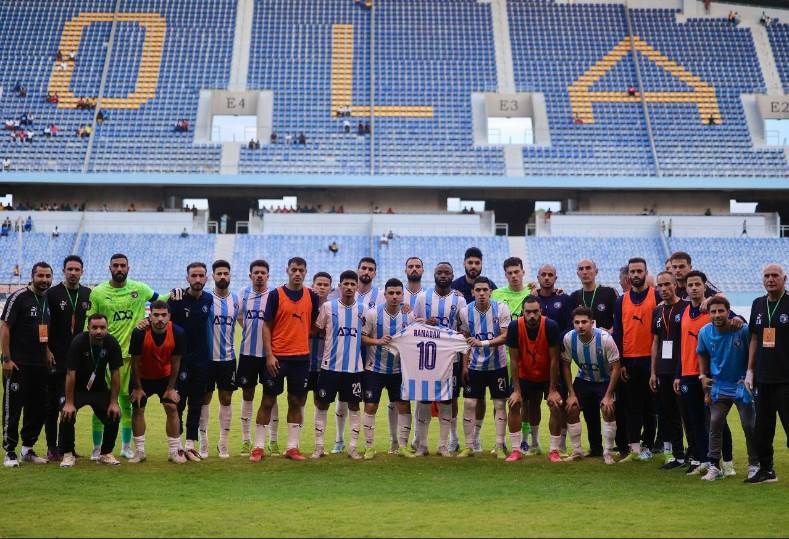 ورفع لاعبو الفريق والجهاز الفني والإداري والطبي قميص رمضان صبحي قبل انطلاق المباراة لدعم نجم الفريق.