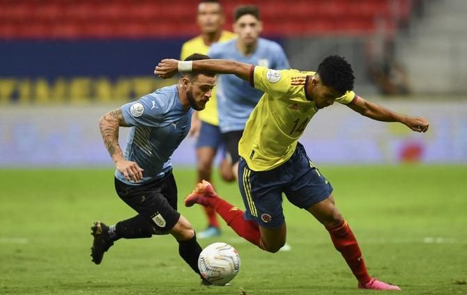 أوروغواي دخلت اللقاء محاولةً فرض أسلوبها لتحصيل هدف مبكر، لكنها افتقدت للإيقاع السريع، ما جعل كولومبيا تبادلها الهجمات في بعض الأحيان.