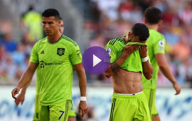 Manchester United suffered an embarrassing 4-0 thrashing by Brentford to sink to the bottom of the Premier League on Saturday, while Manchester City went top as the champions rolled over Bournemouth 4-0.