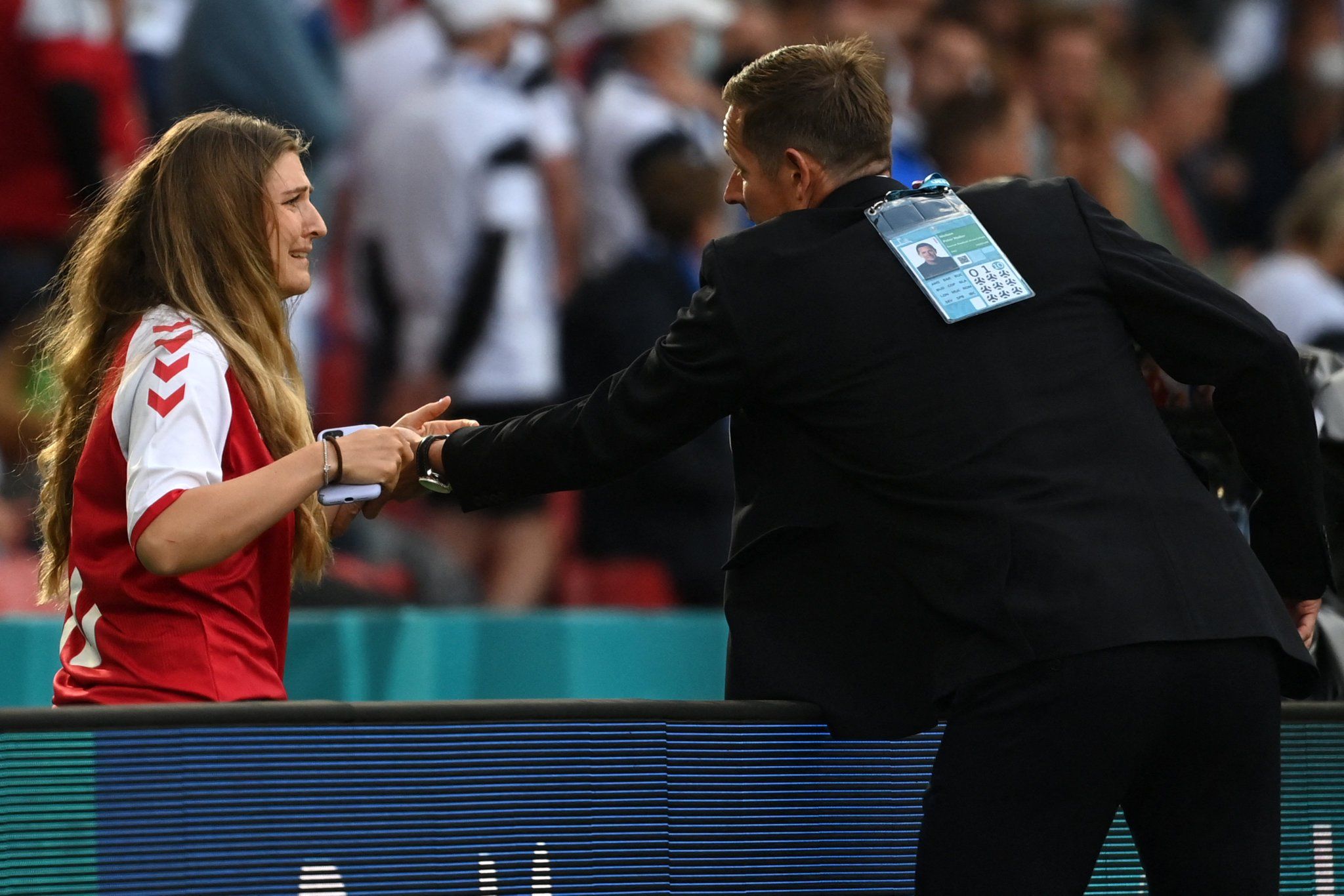 كريستيان إريكسن سقط مغشيا عليه في الدقيقة الـ43 من المباراة دون تدخل من أي لاعب. ليهرع الإسعاف لإنقاذه وسط ذهول زملائه وجميع من في الملعب.