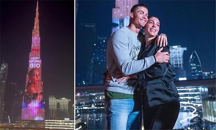 كريستيانو نشر فيديو عبر حسابه الرسمي بموقع التواصل الاجتماعي "إنستجرام" حيث أضاء برج خليفة بصورة جورجينا وكتب البرتغالي: "عيد ميلاد سعيد لـ حبيبتي".