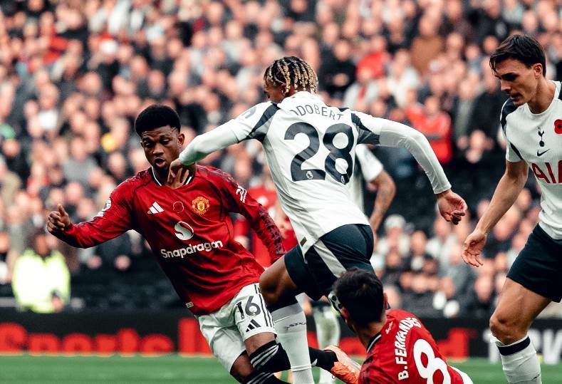 وجاء هدف التعادل لتوتنهام عن طريق ماتياس تيل في الدقيقة 84 أمام "الشياطين الحمر"، كما سجل الثاني ريتشاليسون في الدقيقة 91.