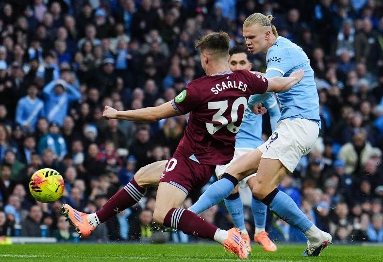 وفي فرصة أخرى، تلقى الفريق كرة عرضية من ريان شرقي، ارتقى لها هالاند برأسه داخل منطقة الجزاء، لكن الكرة مرت بجوار القائم.