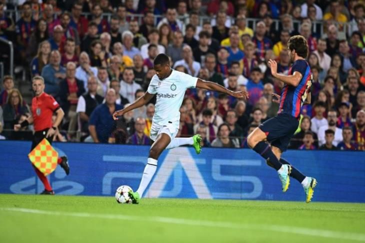 وسدد رافينيا لاعب برشلونة تسديدة قوية من على حدود منطقة الجزاء اصطدمت بقدم أحد مدافعي إنتر ميلان ومرت أعلى العارضة العلوية للمرمى.