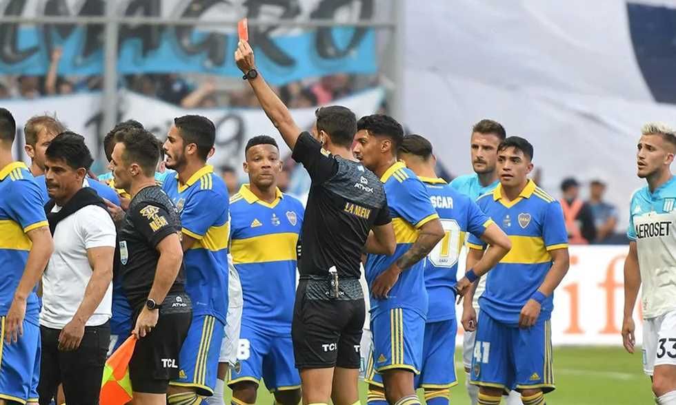 وفي الدقيقة الـ 95 من المباراة بدأت البطاقات الحمراء في الظهور عندما طرد الحكم كل من سيباستيان فيلا لاعب بوكا جونيورز وجوان كاربونيرو لاعب راسينج.
