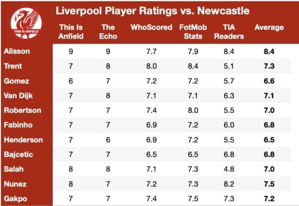 الصحف الإنجليزية وضعت تقييما لكل لاعب من ليفربول أمام نيوكاسل حسب الدرجات من 1 إلى 10.