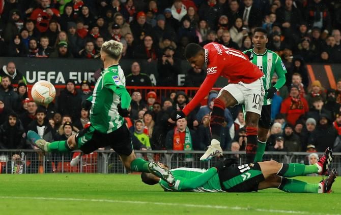 وانتصر مانشستر يونايتد الإنكليزي على ضيفه ريال بيتيس الإسباني 4-1 يوم الخميس في ذهاب ثمن نهائي الدوري الأوروبي.