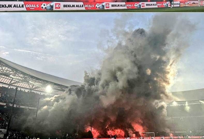 موقع اخبار كورة - توقفت مباراة فينورد وأياكس أمستردام بكأس هولندا بسبب قيام جماهير أصحاب الأرض بإشعال الألعاب النارية وتم إطفاء الحريق في النهاية حيث تم أخيرًا إعطاء الضوء الأخضر لإستكمال المباراة بين أياكس وفينورد.