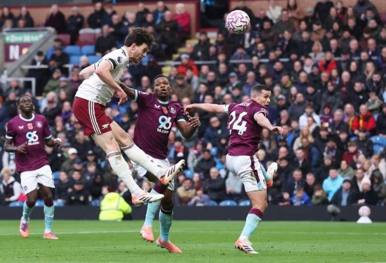 سجل فريق أرسنال هدف التقدم بعد ركلة ركنية متقنة أُرسلت داخل منطقة الجزاء، لتصل إلى جابرييل الذي مررها بقدمه نحو فيكتور جيوكيريس، فحولها الأخير برأسية قوية داخل الشباك، رغم الحصار الدفاعي من لاعبي بيرنلي.