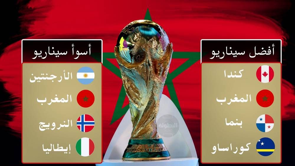 المجموعة المتوقعة: الأرجنتين – المغرب – النرويج – إيطاليا (أو منتخب أوروبي من الملحق).
