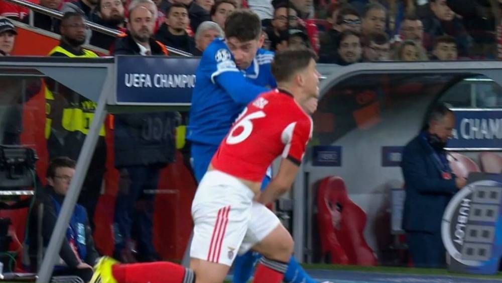 ويرى بنفيكا أن اللقطة التي تجمع اللاعبين، تؤكد وجود اعتداء وأنها كانت تستوجب الطرد بالبطاقة الحمراء، إلا أن الحكم لم يحتسب شيئاً ولم تتم معاقبة اللاعب خلال المباراة ولا بعدها.