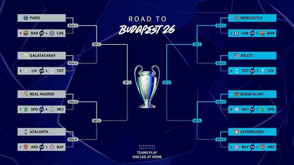 المتأهلون من الملحق: ريال مدريد، باريس سان جيرمان، نيوكاسل يونايتد، أتلتيكو مدريد، أتالانتا، باير ليفركوزن، غلطة سراي، وبودو/غليمت.