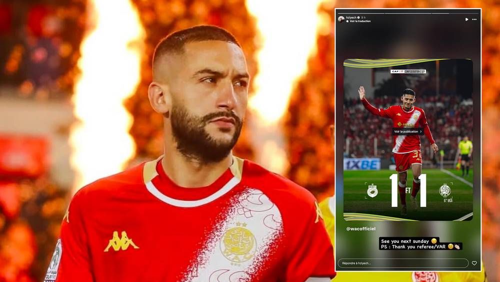 عبر الدولي المغربي حكيم زياش، لاعب الوداد الرياضي، عن استيائه من الطاقم التحكيمي لمباراة فريقه أمام أولمبيك آسفي، ضمن ذهاب ربع نهائي كأس الكونفدرالية الأفريقية.