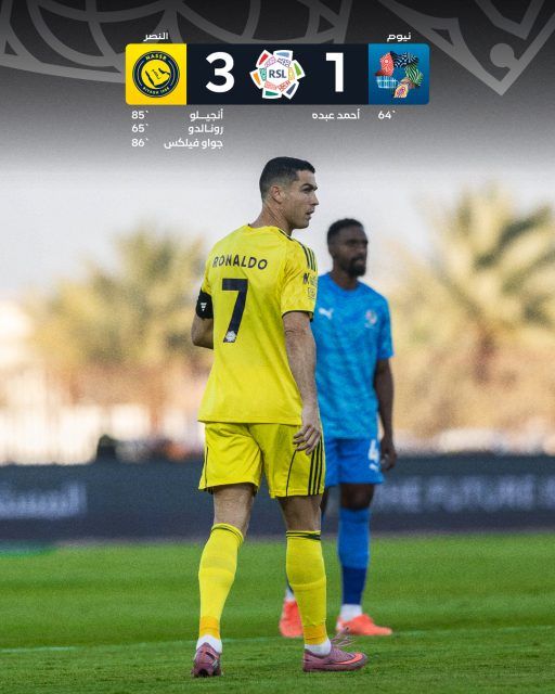 هاي كورة ـ حقق الفريق الأول لكرة القدم بنادي النصر الفوز على نيوم بنتيجة (3-1) ضمن منافسات الجولة الثامنة من بطولة دوري روشن للمحترفين.