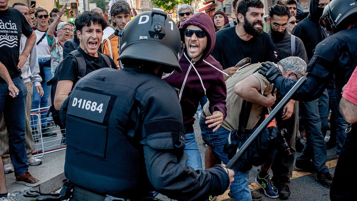 Protestors clash with Mossos police in Barcelona amid demos over the fashion show, May 23