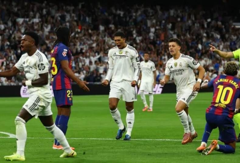 وجاء الهدف بعد تمريرة متقنة من جود بيلينجهام اخترقت دفاعات برشلونة، ليصل بها مبابي وينفرد بحارس برشلونة تشيزني، قبل أن يسدد الكرة بثقة في الشباك، معلنًا تقدم ريال مدريد 1-0 وسط فرحة كبيرة من الجماهير.