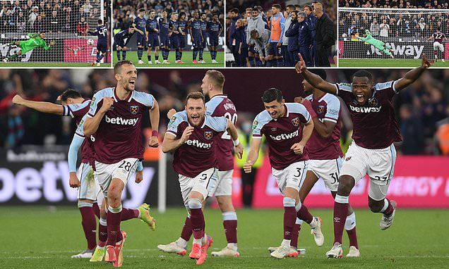 A shootout victory sealed by Said Benrahma's winning penalty booked West Ham a place in the last eight of the Carabao Cup.