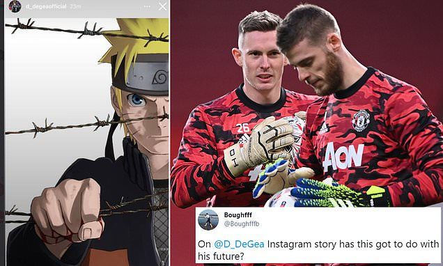 On Monday, De Gea posted a picture of the Japanese animated character Naruto behind a barbed wire fence, trying to pull it out of his way.