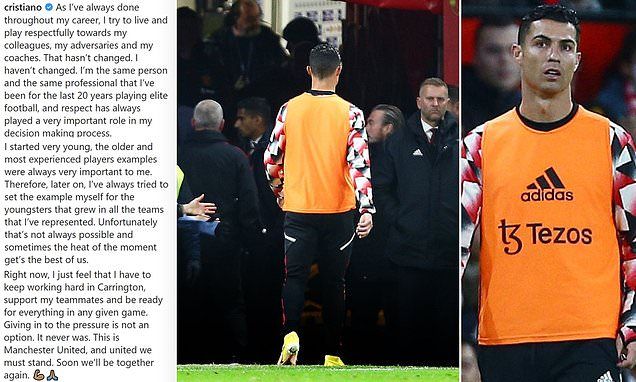 'Sometimes the heat of the moment gets the best of us': Cristiano Ronaldo breaks silence after storming out of Old Trafford after refusing to be brought on against Tottenham... but veteran does NOT say sorry and says 'respect' is key for him