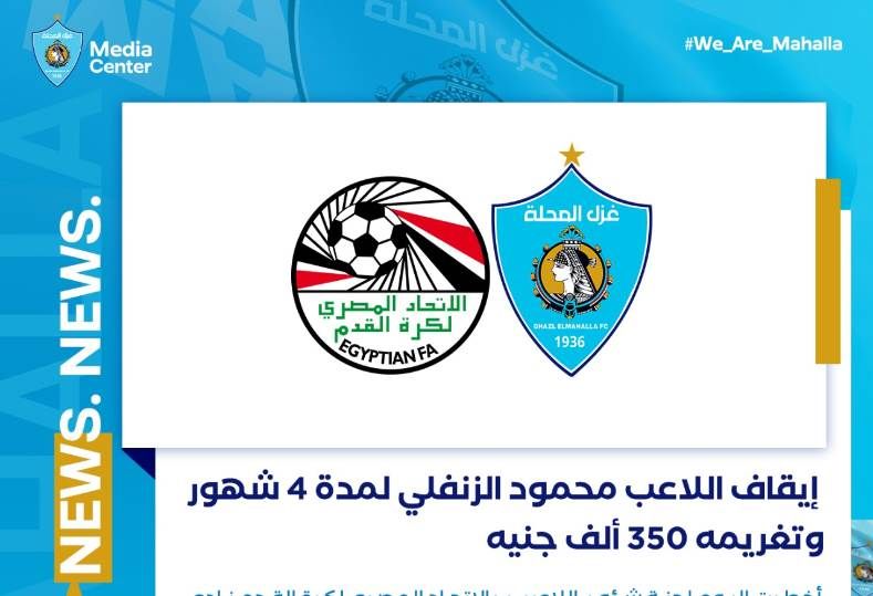 وجاء قرار لجنة شئون اللاعبين بإيقاف الزنفلي لمدة 4 شهور وتغريمه 350 ألف جنيه مصري.