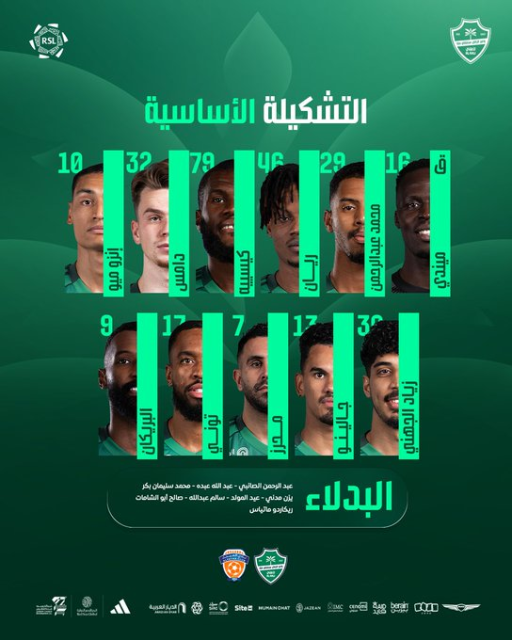 خط الوسط: زياد الجهني، فرانك كيسيه، إنزو ميلو.