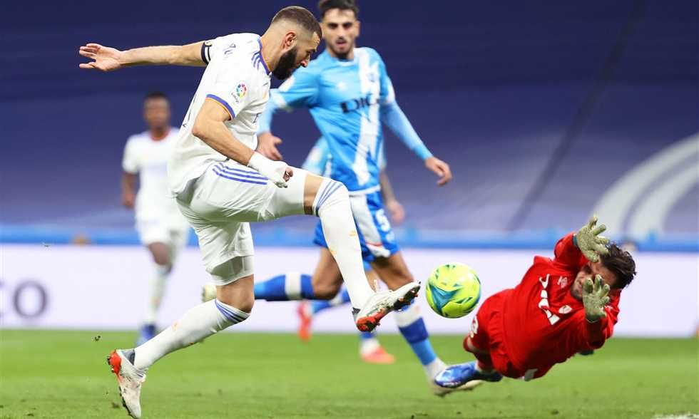 وفي الدقيقة 39 أتى الهدف الثاني بواسطة بنزيمة بلمسة رائعة بعد عرضية من النمساوي دافيد ألابا، فيما كاد فينيسيوس أن يسجل الثالث سريعا في الدقيقة 41 فتصدى الحارس ستول ديميتريفسكي ليتابعها بنزيمة ولكن فوق العارضة.