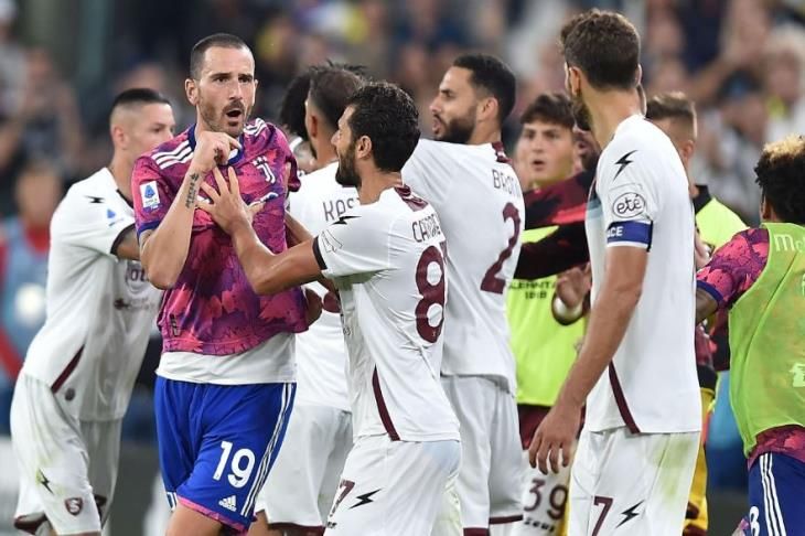 وإثر ذلك، أنهى يوفنتوس المباراة بتسعة لاعبين، عقب طرد ميليك لحصوله على الإنذار الثاني، فيما نال زميله الكولومبي خوان كوادرادو بطاقة حمراء مباشرة لسوء السلوك، كما قرر حكم المباراة أيضا طرد ماسيمليانو أليجري مدرب الفريق الملقب بـ(السيدة العجوز)، كما لعب ساليرنيتانا بعشرة لاعبين عقب طرد لاعبه فيديركو فازيو لسوك السلوك أيضا.