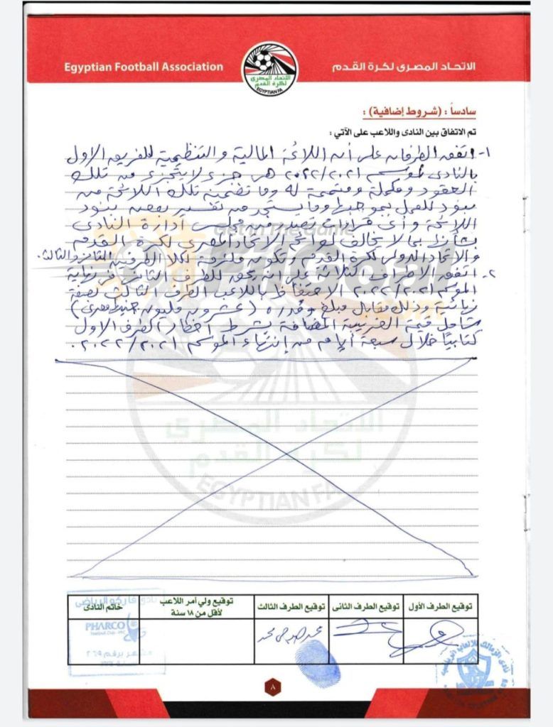 ونشر الموقع نسخة من العقد الذي تخطط إدارة نادي فاركو، لاستعماله في شكواها ضد الزمالك لدى الاتحاد المصري لكرة القدم.