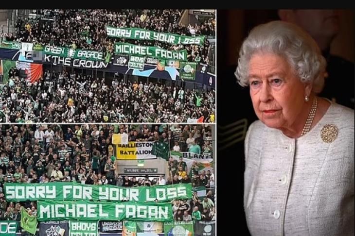 رفع مشجعو فريق سلتيك لافتتين قبل تعادلهم 1-1 مع شاختار ،واحدة حملت سباباً والأخرى كتب عليها "نأسف لخسارتك مايكل فاجان"، في إشارة إلى الرجل الذي تسلق جدران قصر باكنجهام قبل أن يتسلل إلى غرفة الملكة بينما كانت نائمة في عام 1982.