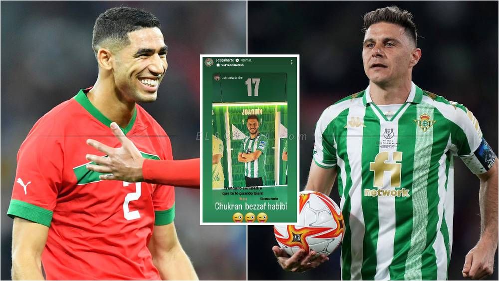 ونشر حكيمي لاعب باريس سان جيرمان الفرنسي، يوم أمس الإثنين، صورة لملصق خواكين في مستودع ملابس ملعب "بينيتو فيامارين" التابع لنادي ريال بيتيس، معلقا عليها بـ"ابق هادئا سأحتفظ به جيدا".