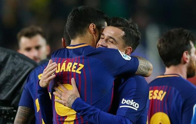 ويبدو برشلونة منتشياً بمنتدبيه الجديدين والحديث عن الكولومبي ييري مينا وخاصة النجم البرازيلي فيليبي كوتينيو القادم من صفوف ليفربول الإنكليزي في صفقة قياسية، والذي سجّل مشاركته الأولى مع الفريق في كأس الملك الخميس من خلال ما يقرب من 25 دقيقة في مواجهة إسبانيول، والتي قدّم فيها الفتى البرازيلي نفحات أولية تؤكد أنّ مسألة تأقلمه مع أسلوب الفريق وأجوائه ليس إلا مسألة وقت لا أكثر.