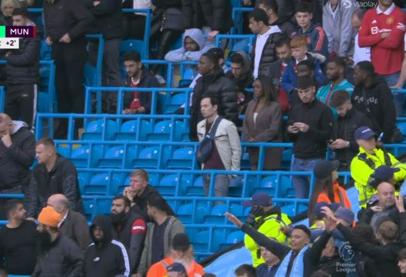 يعود سبب مغادرة جمهور مانشستر يونايتد بسبب السقوط المرعب الذي حدث لفريق الشياطين الحمر، في الشوط الأول أمام أصحاب الأرض مانشستر سيتي بأربعة أهداف دون رد.