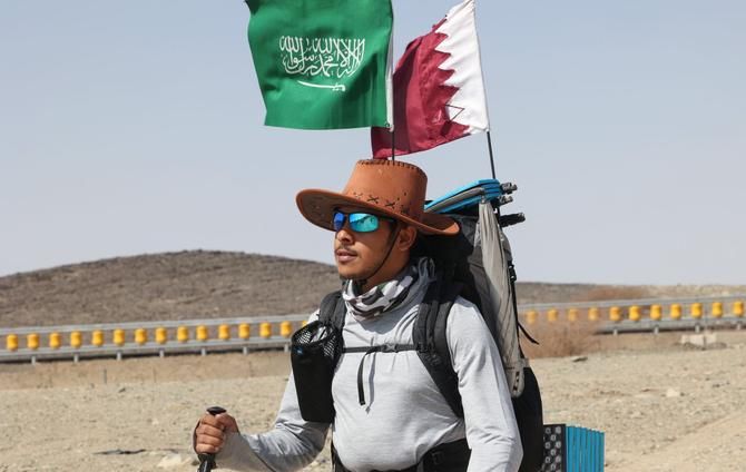 وتابع "المشي من جدة إلى الدوحة يختلف كل 100 كلم. يعني أول 100 كلم كثبان رملية ثم جبال ثم أراض فارغة ثم مزارع"، مضيفا "سأمر في جميع التضاريس في بلد واحد في غضون شهرين. هذا شيء جميل".