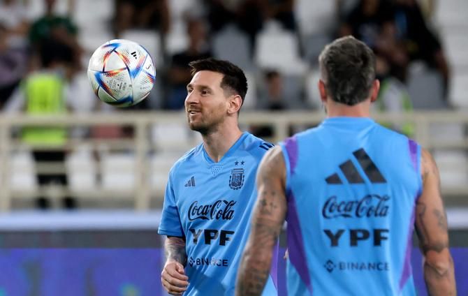 ورافق ميسي نجما منتخب التانغو ولاعبا فريق يوفنتوس آنخيل دي ماريا ولياندرو بـاريديس لخوض مباراة ودية ضد المنتخب الإماراتي على إستاد محمد بن زايد.
