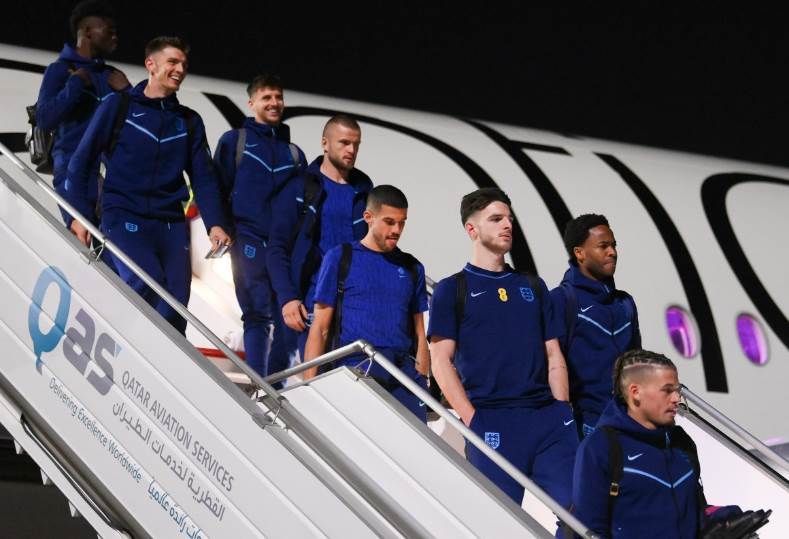 وغادرت بعثة منتخب إنجلترا مطار برمينجهام صباح اليوم، ووصلت إلى قطر اليوم، من أجل بداية المعكسر النهائي قبل خوض منافسات كأس العالم.