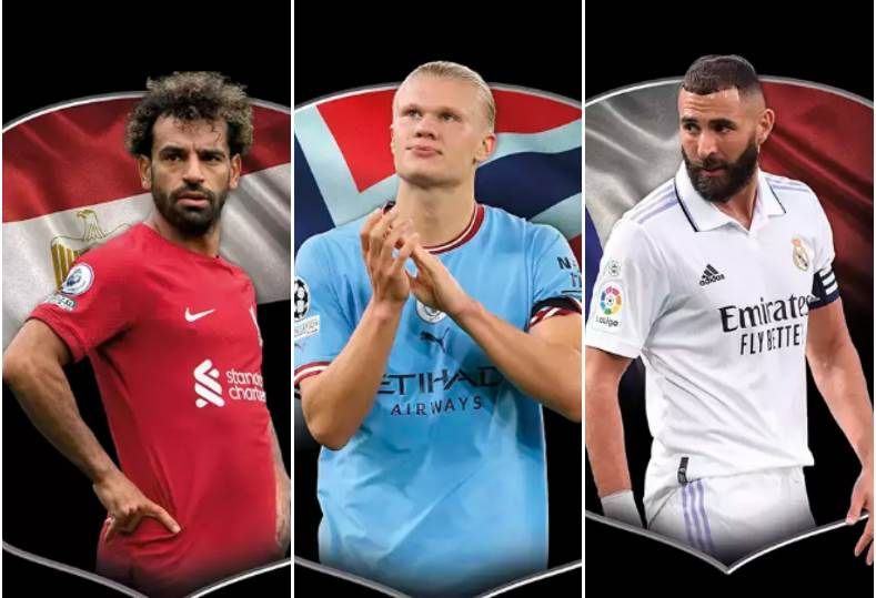 أفضل لاعب في العالم : محمد صلاح (ليفربول الإنجليزي) - كريم بنزيما (ريال مدريد الإسباني) - إيرلينج هالاند (مانشستر سيتي الإنجليزي).