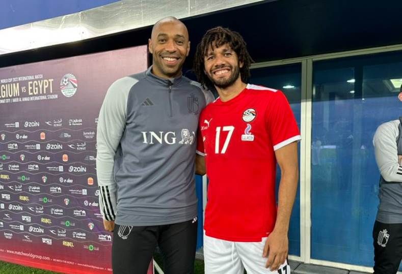 موقع اخبار كورة - التقط لاعب الوسط المصري محمد النني صورة رفقة لاعب نادي أرسنال السابق، تيري هنري أثناء الاستعداد لمواجهة مصر أمام بلجيكا الودية.