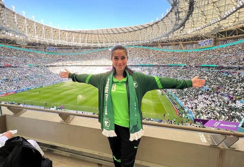 وساندت اللاعبة فرح جفري منتخبها السعودي، بين الحضور على ستاد لوسيل، الذي ضم أكثر من 88 ألف مشجع، وشهد فوز السعودية على الأرجنتين 2-1، كأول مننتخب آسيوي يسجل هدفين على الأرجنتين في مباراة واحدة.