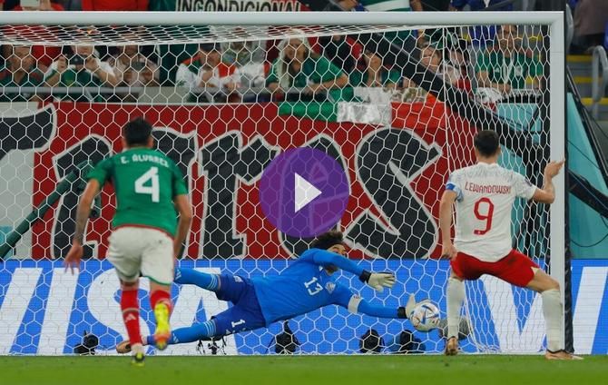 الدقيقة 55 – عكس اتجاه اللعب تماماً الكرة تهيأت أمام ليفندوفيسكي الذي ضغط بقوة للحلاق بها إلا أن مدافع المكسيك هيكتور مورينو أعاقه فلجأ حكم المباراة لتقنية الفيديو محتسباً ركلة جزاء للمنتخب البولندي.