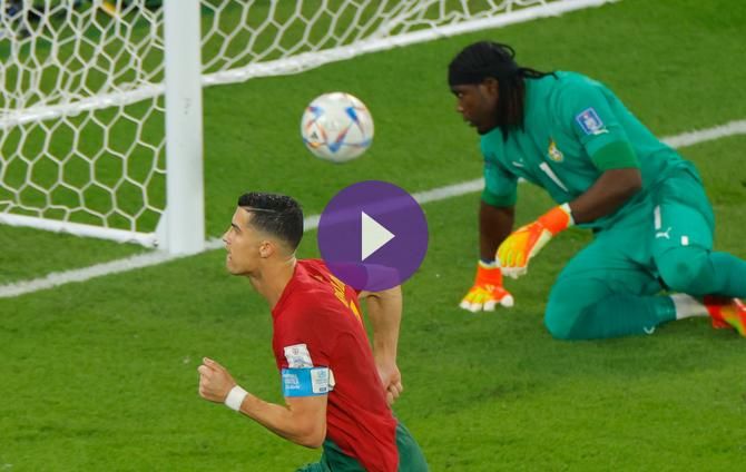 وبات رونالدو أول لاعب في التاريخ يسجل في 5 نسخ من بطولة كأس العالم (2006، 2010، 2014، 2018، 2022).