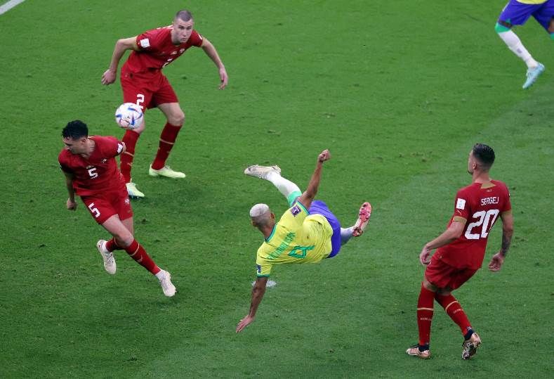 وعاد ريتشارليسون ليسجل الهدف الثاني له ولمنتخب البرازيل في الدقيقة 73 بطريقة رائعة، بضربة خلفية مزدوجة ليكون أفضل هدف في الجولة الأولى بكأس العالم.