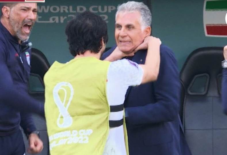 وفور انتهاء المباراة تدافع لاعبو إيران تجاه بعضهم البعض، رفقة أعضاء الجهاز الفني بقيادة المدرب كارلوس كيروش، للاحتفال بالفوز القاتل على ويلز.