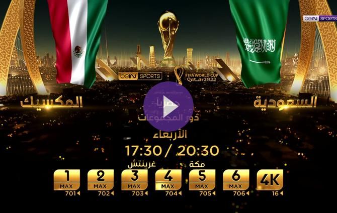 البث المباشر لمباراة السعودية والمكسيك سيكون الأربعاء الثلاثين من تشرين الثاني/نوفمبر عند الساعة العاشرة مساء بتوقيت مكة المكرمة في إستاد لوسيل على قناة beIN SPORTS MAX 1.