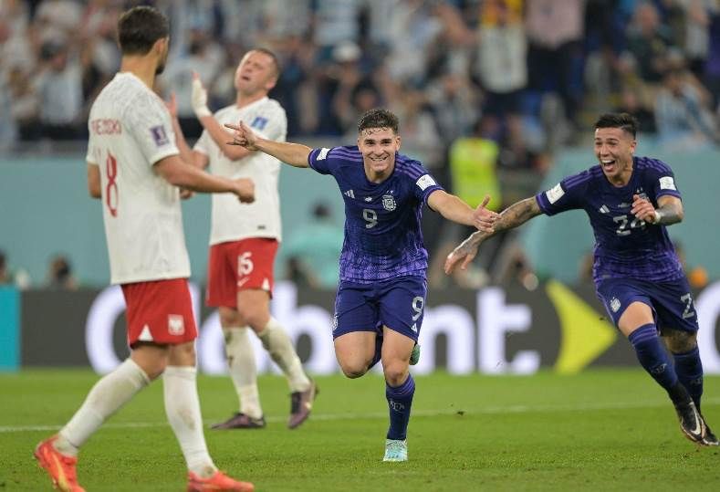 وأضاف جوليان ألفاريز الهدف الثاني لصالح منتخب الأرجنتين ضد بولندا في الجولة الأخيرة من المجموعة الثالثة لكأس العالم قطر 2022.