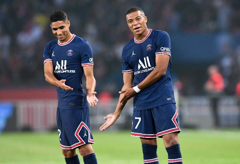 ونشر مبابي عبر حسابه على موقع التواصل الإجتماعي تويتر صورة تجمعه بأشرف حكيمي والذي تجمعه به صداقة قوية، ووضع علم المغرب وتاج الملك.