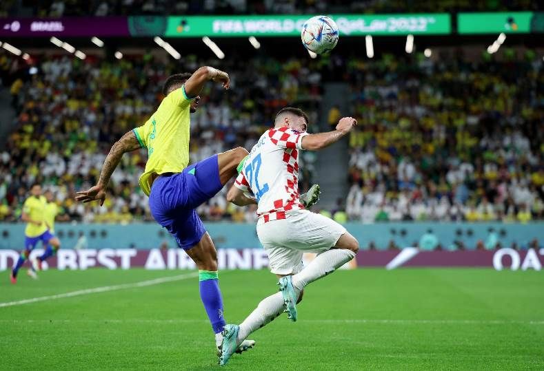 موقع اخبار كورة - تدخل عنيف من قبل دانيلو، لاعب منتخب منتخب البرازيل، مع يورانوفيتش، لاعب كرواتيا، بالمباراة التي تقام اليوم الجمعة، على ملعب المدينة التعليمية، ضمن منافسات دور ربع نهائي كأس العالم قطر 2022.