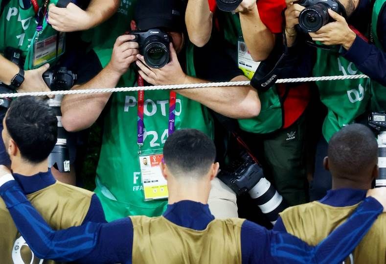 وتوجه المصورون المتواجدون في لقاء المغرب ضد البرتغال، إلى كريستيانو رونالدو لالتقاط الصور الخاصة به خلال تواجده على دكة بدلاء البرتغال خلال مواجهة المغرب في كأس العالم 2022.