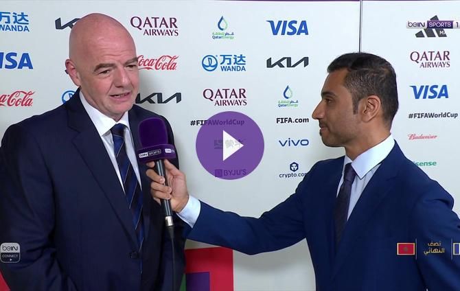 كما تطرّق رئيس الاتحاد الدولي لكرة القدم لمواجهة "الديوك" و"أسود الأطلس" مشيرًا إلى أنها متباينة الأهداف بين منتخب فرنسي يطمح للحفاظ على لقب كأس العالم ونظيره المغربي المتألّق الذي استحق التواجد في هذا الدور.